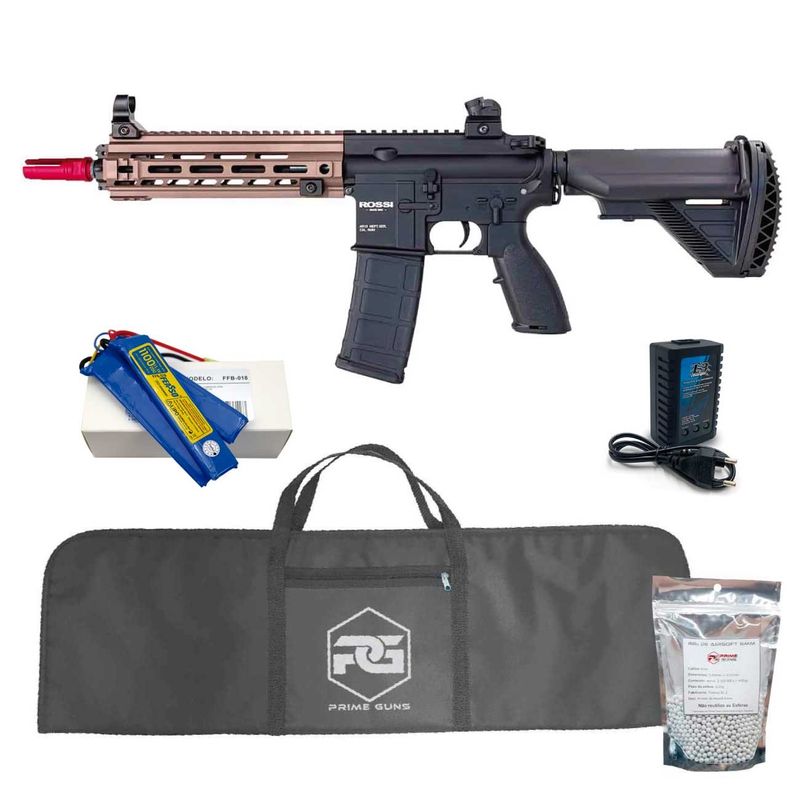 O Rifle Rossi Neptune 9" Devgru Metal Airsoft 6mm AEG Kit dispara no modo Semi e Full Automática com velocidade de 350fps - 107m/s e energia de 1,2 Joules Ver mais
