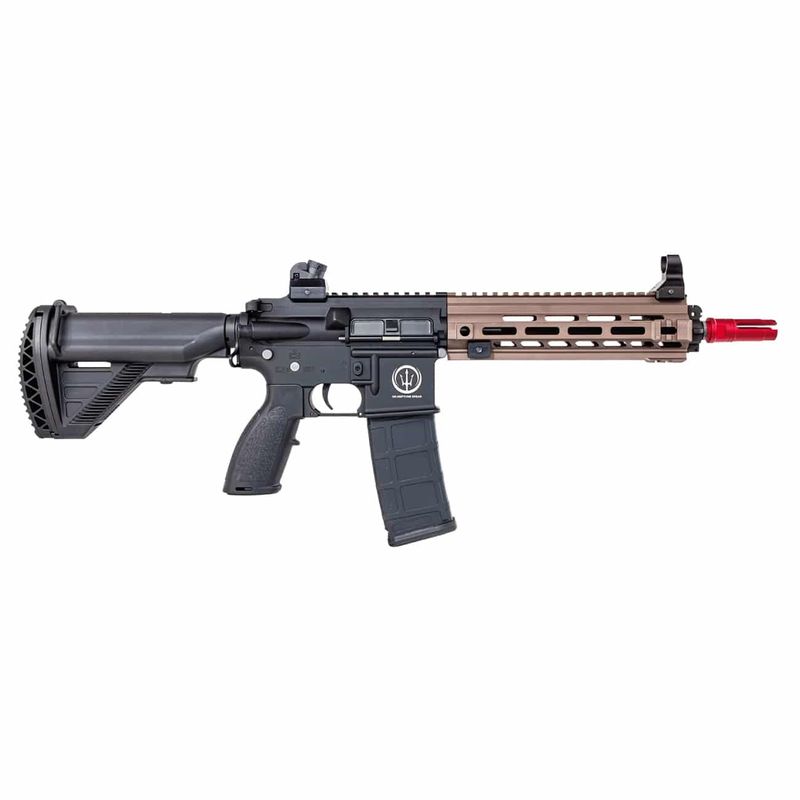 O Rifle Neptune 9 Devgru possui cano padrão de 9 polegadas de comprimento, mas o que mais impressiona é sua construção com corpo em metal e polímero, trilho superior em metal de 20mm para miras óticas (Red Dot) e massa e alça de mira em polímero, rebatíveis.