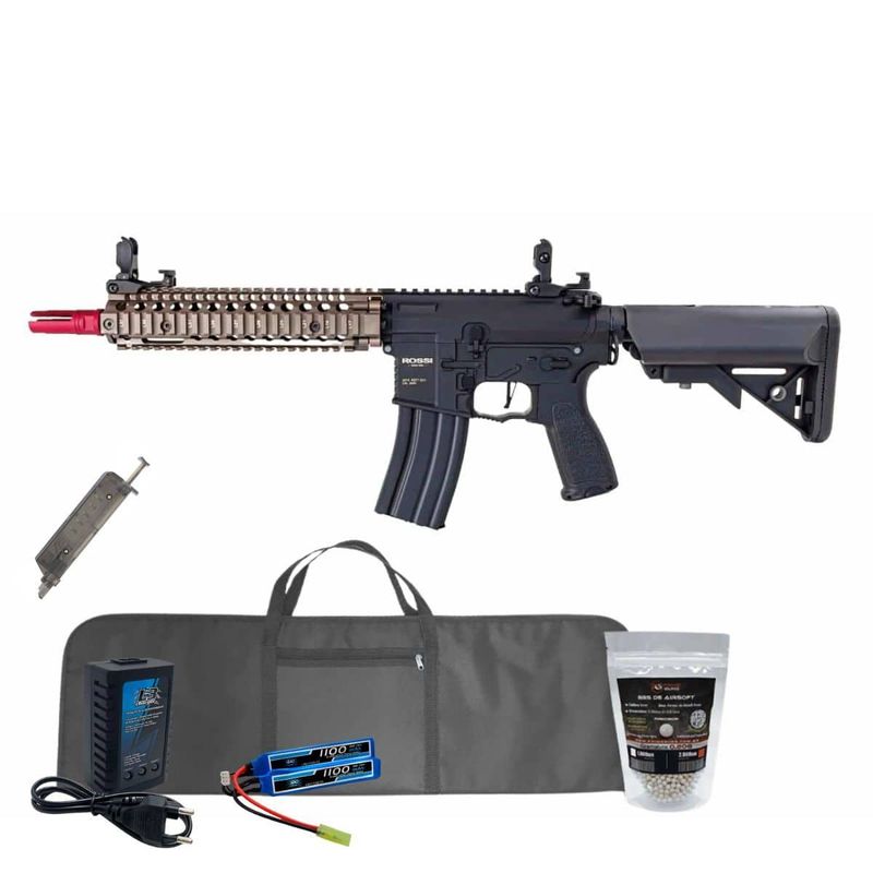 O Rifle Rossi Neptune 9" Marsoc M4 Airsoft 6mm AEG Kit dispara no modo Semi e Full Automática com velocidade de 380fps - 116m/s e energia de 1,2 Joules Ver mais