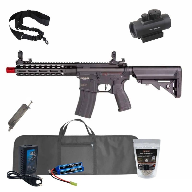 + Carregador B3 + 2.000 BBs de Airsoft + Bateria Lipo 7.4 1100mAh + Capa com forro + Red Dot 1×35 + Bandoleira de 1 ponta + SpeedLoader 90 BBs