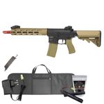 O Rifle Rossi Sentinel 10" M-Lock TAN M4A1 AEG Airsoft 6mm Kit dispara no modo Semi e Full Automática com velocidade de 380fps - 116m/s e energia de 1,35 Joules Ver mais
