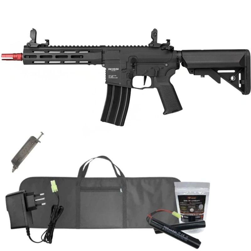 A Rossi, que já produz pistolas e revólveres Co2 sob licença, expandiu seu catálogo para rifles airsoft. O Rifle Airsoft Rossi Sentinel AR15 8" M-LOK é um AEG 6mm com corpo em fibra de nylon e partes internas em metal — equilíbrio entre leveza e resistência.