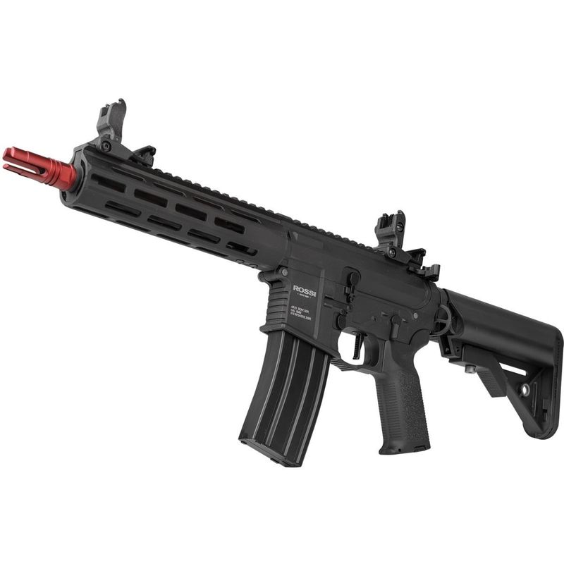A Rossi aposta numa plataforma compacta M4A1 / AR-15, com coronha retrátil, trilho superior para Red Dot e miras rebatíveis — tudo pensado para uso CQB e emergências táticas leves.