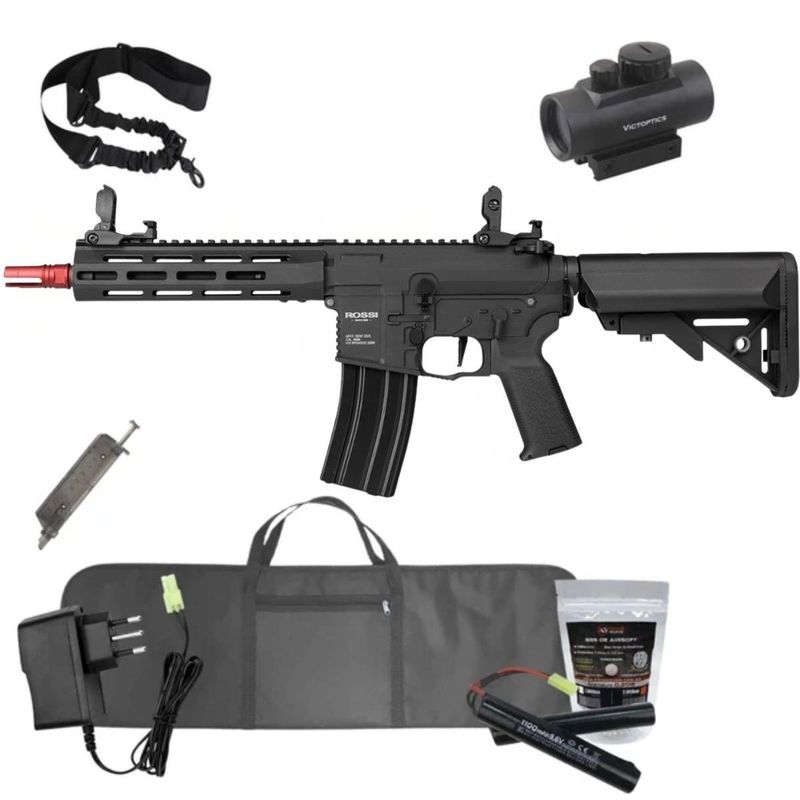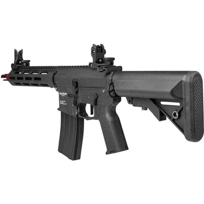 A Rossi, que já produz pistolas e revólveres Co2 sob licença, expandiu seu catálogo para rifles airsoft. O Rifle Airsoft Rossi Sentinel AR15 8" M-LOK é um AEG 6mm com corpo em fibra de nylon e partes internas em metal — equilíbrio entre leveza e resistência.