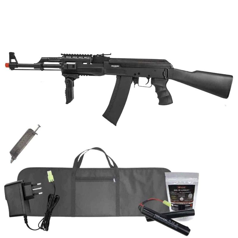 O Rifle Rossi Sentinel AK Tactical AEG Airsoft 6mm Kit dispara no modo Semi e Full Automática com velocidade de 360fps - 109m/s e energia de 1 Joules Ver mais