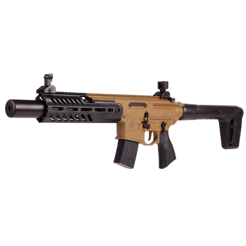 Baseado nos designs inovadores do SIG MCX Rattler Canebrake, este modelo CO2 com miras rebatíveis e carregador de 30 tiros é ideal para treinamento e prática.