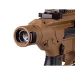 O MCX Rattler inclui um trilho ótico Picatinny longo para miras rebatíveis frontal e traseira ou outros acessórios óticos, e o guarda-mão apresenta ranhuras M-LOK para a rápida e segura fixação de acessórios como lanternas e lasers. Assim como na versão real em aço, esta carabina de ar comprimido vem com um cano encoberto que simula o peso de um supressor, auxiliando na familiarização dos atiradores com o peso e operação da versão genuína.