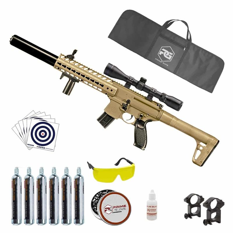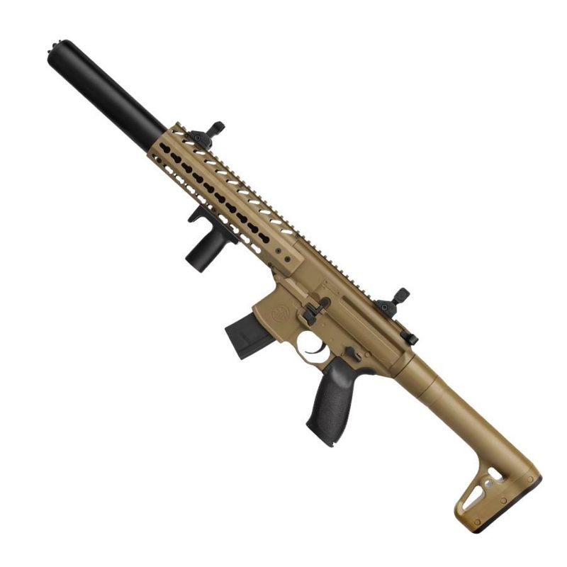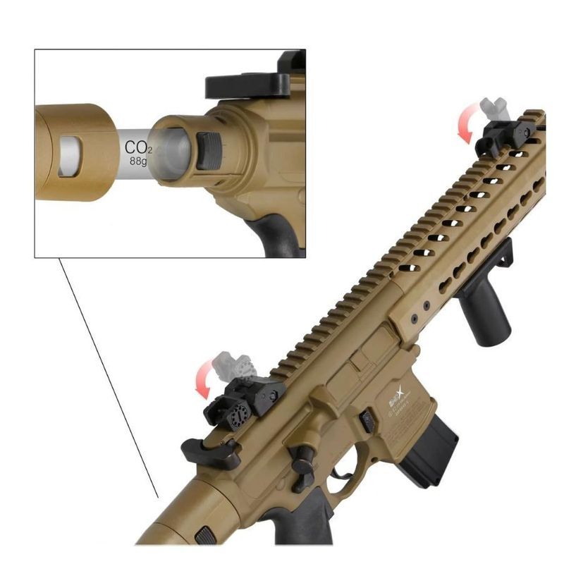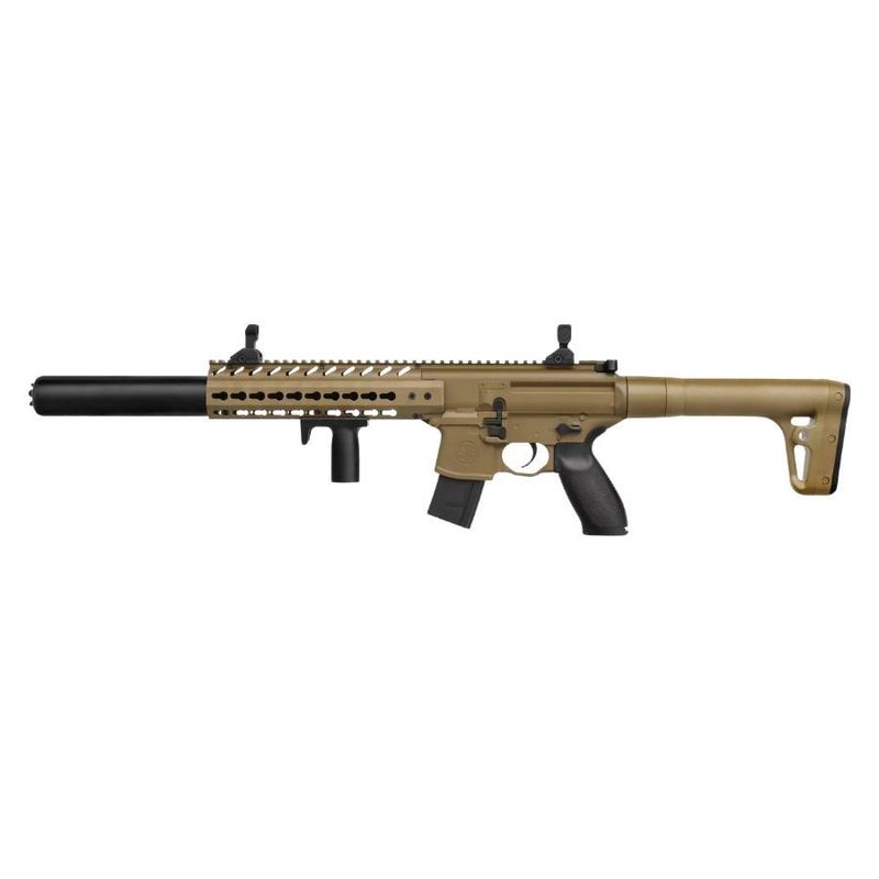 A carabina de ar comprimido Sig Sauer MCX TAN CO2 vem em um calibre diábolo 4,5mm (.177) e tem um corpo de metal e polímero. Graças ao inovador magazine de 30 tiros, é ideal para um treino plinking rápido e preciso.