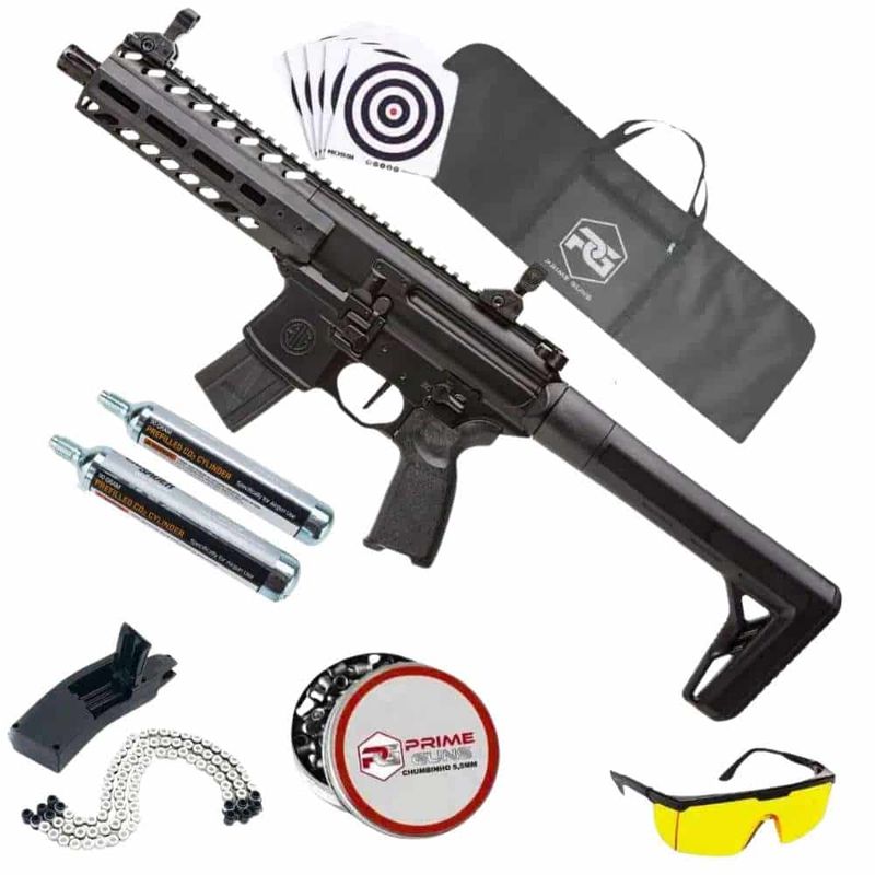 + Capa Reforçada + 500 Chumbinhos + 2 Co2 88g + Óleo de Silicone + Óculos de Segurança + Alvos + Magazine
