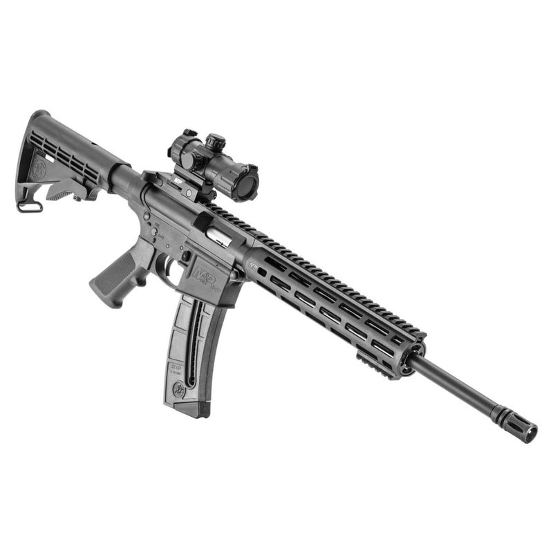 Medindo até 85,9cm com a coronha telescópica esticada e com cano de 41,9cm (16,5"), o M4 MP15 .22lr da SW oferece o tamanho padrão dos rifles M4