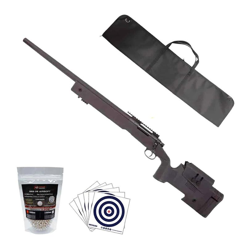 O Rifle Sniper Airsoft M40 Storm Rossi Spring 6mm Kit dispara no modo Repetição (Ferrolho) com velocidade de 500fps - 152m/s e energia de 2,3 Joules Ver mais