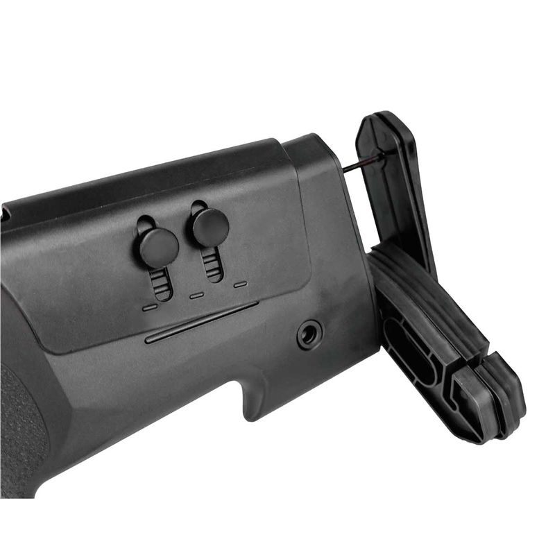 Sua propulsão se dá por mola, acionada por sistema Bolt-Action, ou seja, por ferrolho que fica localizado em sua lateral para engatilhar rapidamente. Por se tratar de um equipamento monotiro, você precisará engatilhar a cada disparo.