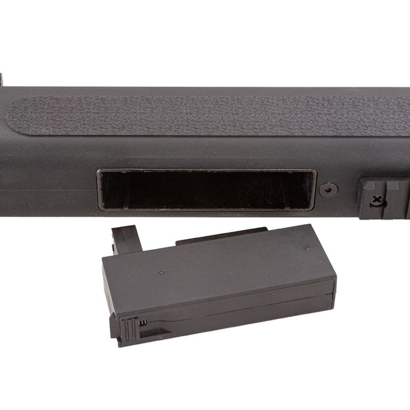 Sua propulsão se dá por mola, acionada por sistema Bolt-Action, ou seja, por ferrolho que fica localizado em sua lateral para engatilhar rapidamente. Por se tratar de um equipamento monotiro, você precisará engatilhar a cada disparo.