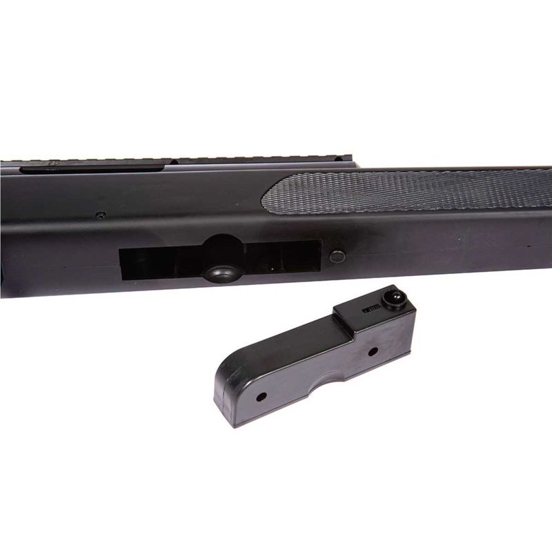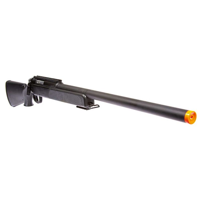 Rifle sniper de airsoft em metal com coronha em plástico ABS e acessórios. Revista removível para 25 rodadas 6 mm BB. Trilhos de 22 mm para fixação de acessórios e dispositivos de mira. Sistema BAX hop-up ajustável (Ballistic Action Xtreme Gear System) para melhorar a precisão.