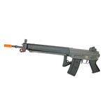 Calibre: 6mm Alimentação: Elétrica – Bateria Modo de disparo: Full Auto, Semi Auto Velocidade de saída: 380fps - 115m/s Distância efetiva: até 30 metros Material: Polímero ABS e metal Peso: 3,040kg Comprimento: aproximadamente 22 polegadas Capacidade do Magazine: 500 BBs Coronha: Rebatível Bipé: Integrado e rebatível
