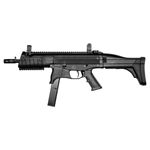 • Características adicionais: Retém de ferrolho e carregador ambidestros, coronha rebatível, trilhos para acessórios