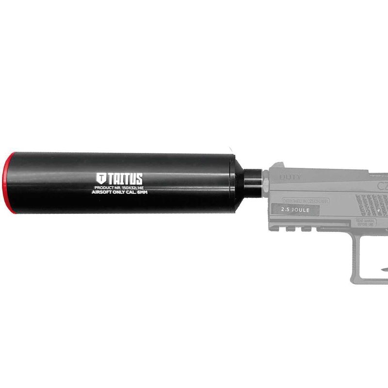 Fabricado pela empresa Taitus, que atua fortemente no segmento de armas de pressão (Airsoft e Airgun), o silenciador 150x32mm é ideal para armas pequenas e curtas.