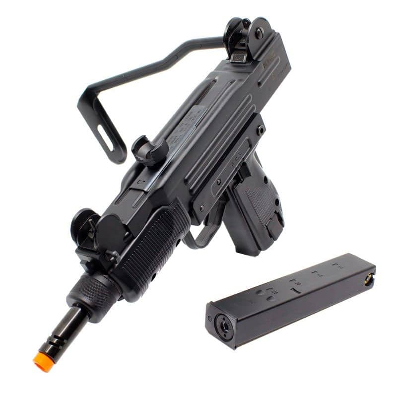 A UZI KWC Co2 Airsoft possui capacidade para 36 BBs 6mm e alcance de até 50 metros.