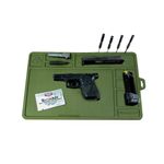 Aplicação: Tapete com base de borracha para manutenção de armas, com alojamento para saca pinos.