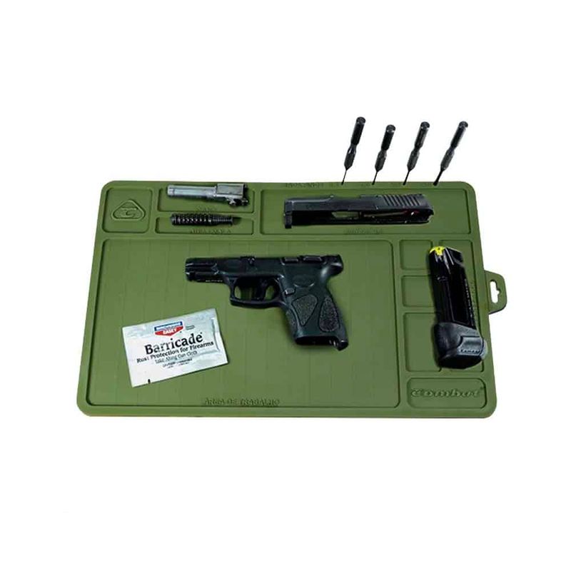 O tapete de manutenção e limpeza da Combat é próprio para acomodar e apoiar sua arma durante o processo de limpeza ou manutenção periódica.