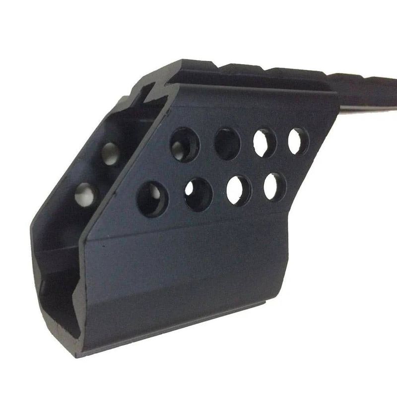 Fabricado em metal de alta resistência e pesando apenas 75g com dimensões de 13,5 por 5cm, é um acessório leve e prático de carregar, já que fica fixo em sua pistola, vai ser algo praticamente imperceptível, e devido sua utilidade, vai se tornar insubstituível.