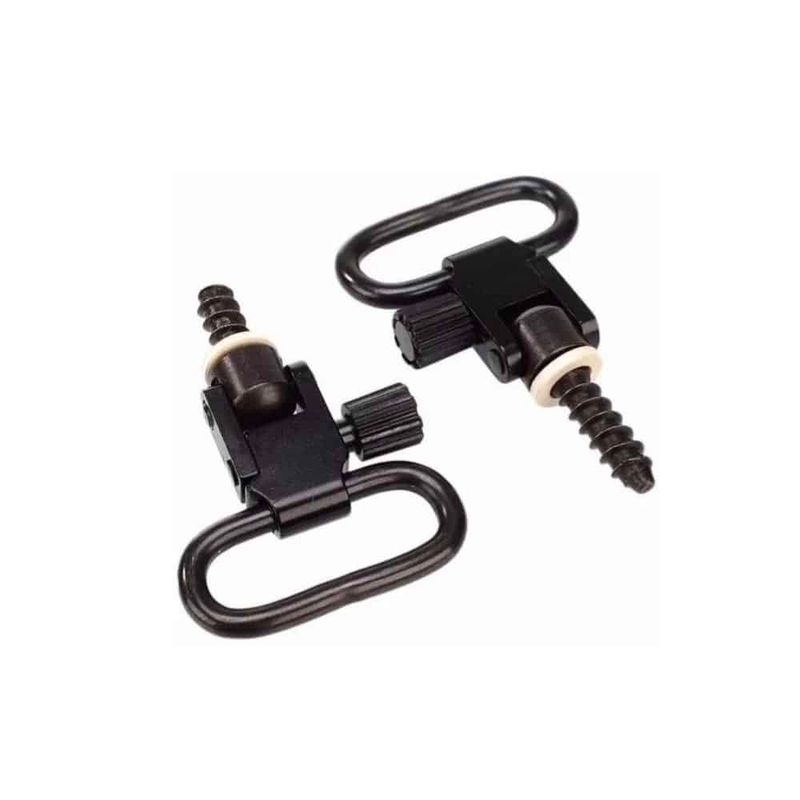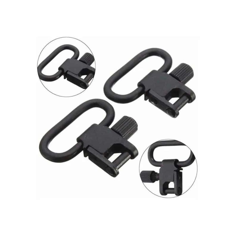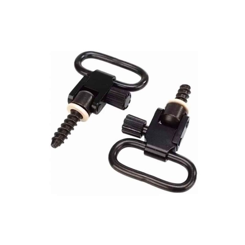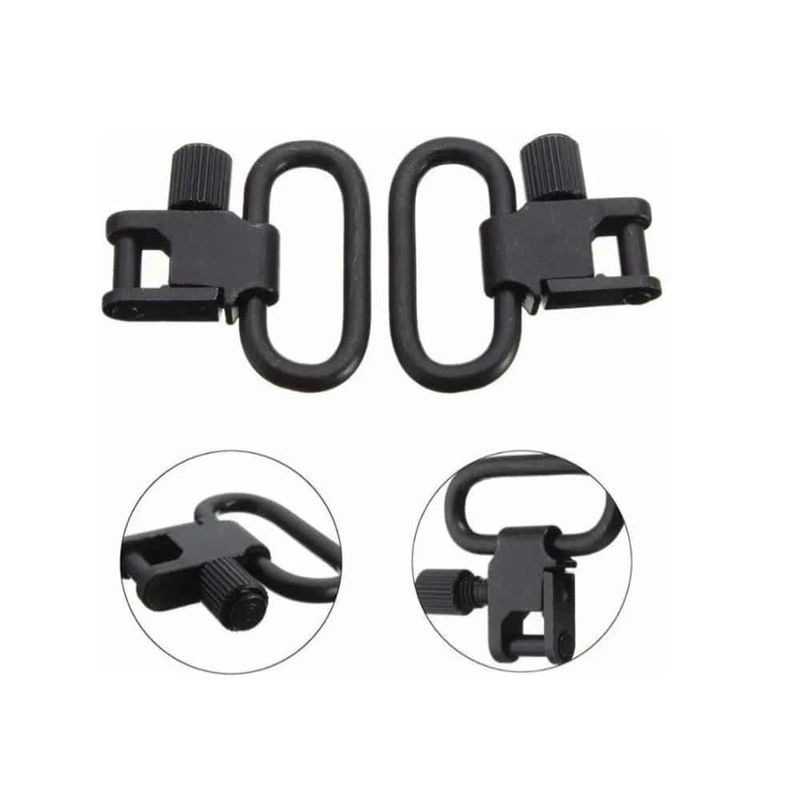 Zarelho articulado com botão de saque rápido (Quick Release) para instalação de bandoleira em coronhas de madeira.